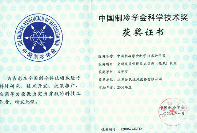 中国制冷学会科学技术奖