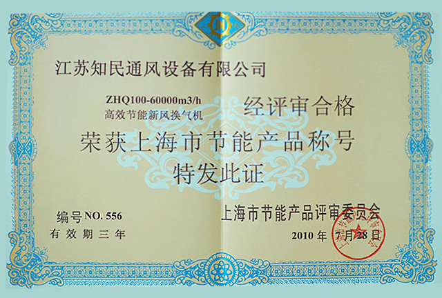 荣获上海市节能产品称号