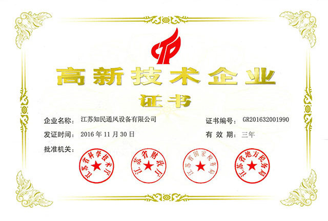 高新技术企业证书