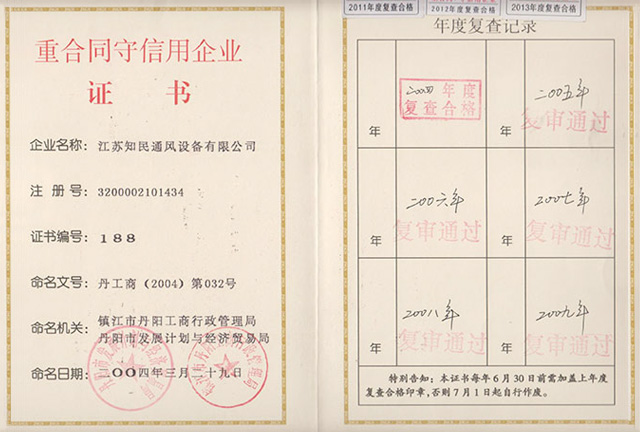 重合同守信用企业证书