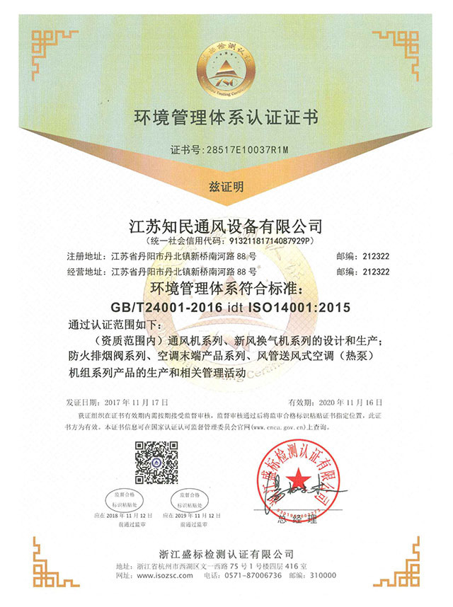 环境管理体系认证证书